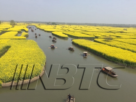 早茶过后,我们前往第一个景点——【千垛菜花景区】。兴化典型的里下河生态湿地特征,地形多水域,水系交汇岛状块状分布的农田,早前农作出行主要交通工具之一就是船只。“水乡泽国”兴化作为里下河地区闻名遐迩的“鱼米之乡”,千垛景区就是水域四面环绕的“垛田”上长满了金黄色的油菜花。当一幅“油菜花开金满地”、“河有万弯多碧水,田无一垛不黄花”的壮阔美景映入眼帘时,我们感受到原生态带来的视觉震撼。伴随着明媚的阳光,我们沿着小路徐徐前进,在走走停停缓慢前行中,静静地欣赏四周的美景。