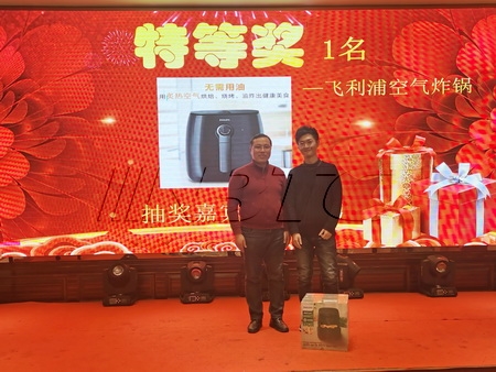 抽奖活动分四轮进行,奖项分别为三等奖、二等奖、一等奖和特等奖,年会奖品有砂锅、拉杆箱、剃须刀和空气炸锅,现场气氛真是热烈无比,即使没有被抽中的,公司也为大家准备了阳光普照奖,保证人人都有奖品。
